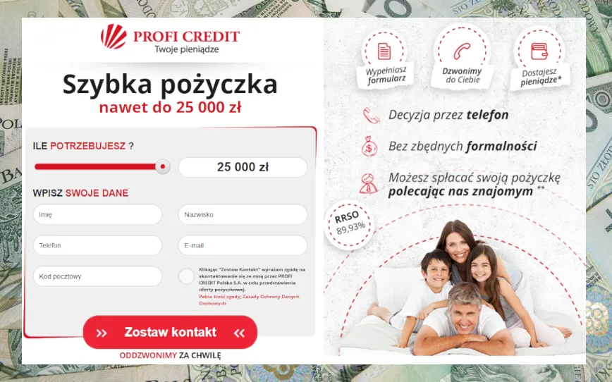 Kluczowe informacje:- Oprocentowanie Profi Credit uzależnione jest od rodzaju pożyczki i indywidualnej oceny zdolności kredytowej